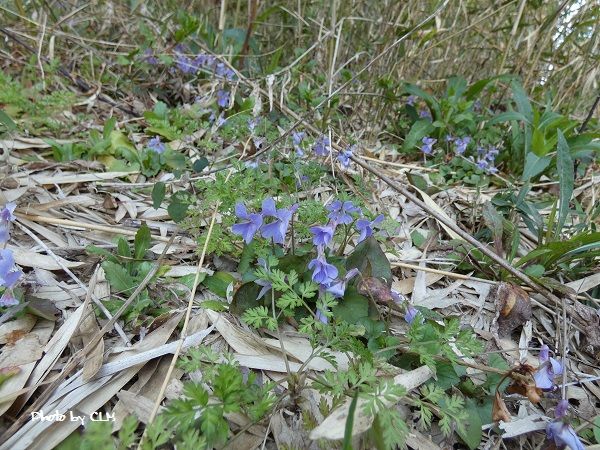 お天気が良くて花がきれいです。レンギョウスミレ五葉アケビも花の蕾が!こぶしも♬下をみると・・・えっ?早っ思いがけなく初物です